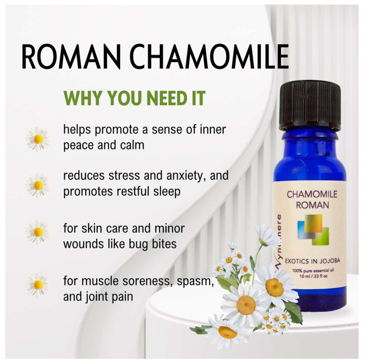 Chamomile Roman has a sweet, fruity odor often referred to as apple-like. This essential oil helps promote a sense of inner peace and calm, reduces stress and anxiety, and promotes restful sleep. It can be supportive of healthy reproductive and digestive systems. Chamomile is anti-inflammatory and is often used as a balm for muscle soreness, spasm, and joint pain. Its anti-inflammatory properties also make it an excellent essential oil for skin care and minor wound treatment, like soothing insect bites. This has already been diluted to 10% in Jojoba oil to make it more affordable, but we suggest diluting further to a 3% therapeutic level before using it on the skin.